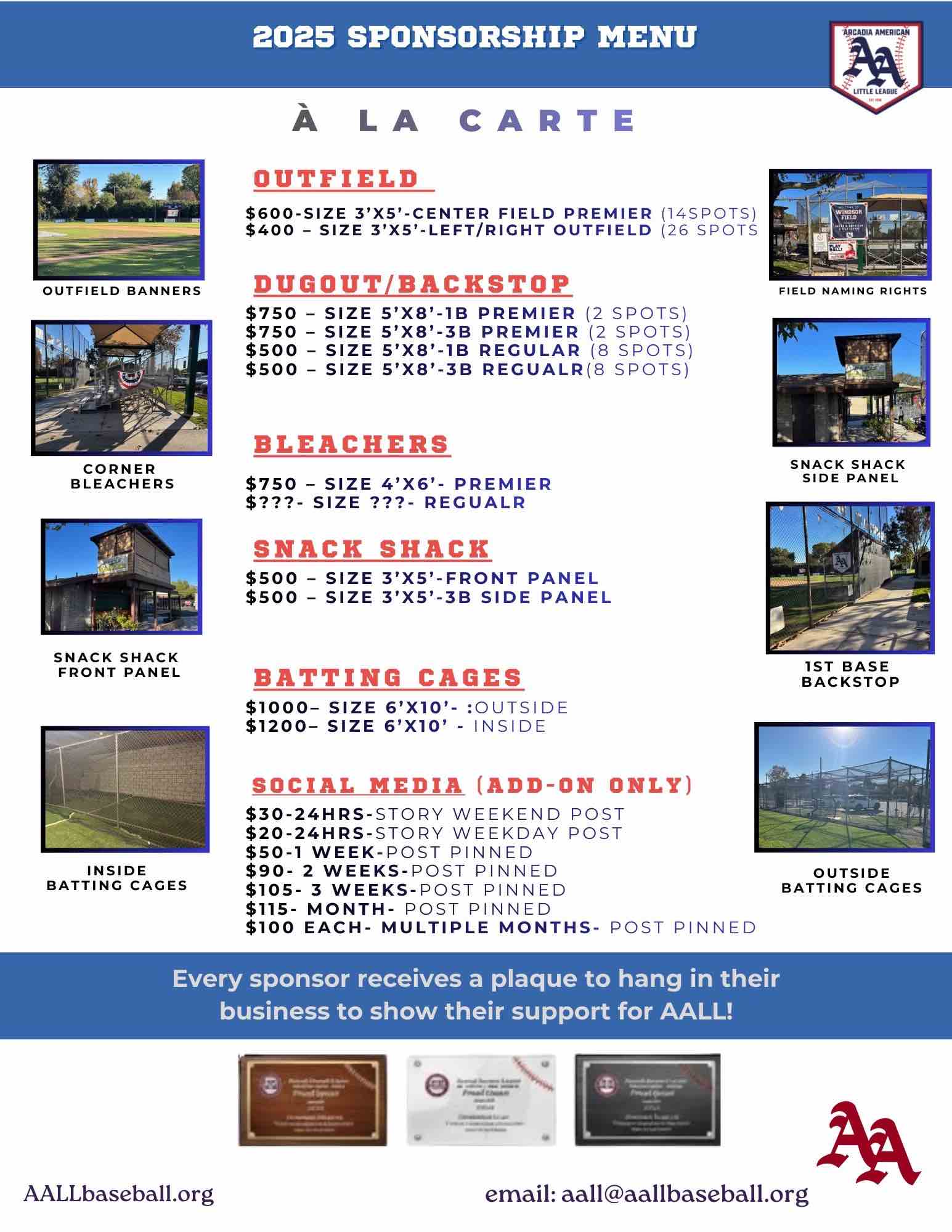 - Please make checks out to Arcadia American Little League and mail checks to